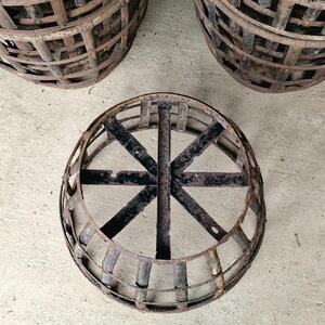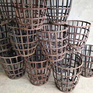 A impressive collection of 10 metal baskets formerly protective carriers of the well-known dame jeanne bottles, used patina, good condition with some imperfections and traces of wear, for sale starting from 4 pieces, France 1920