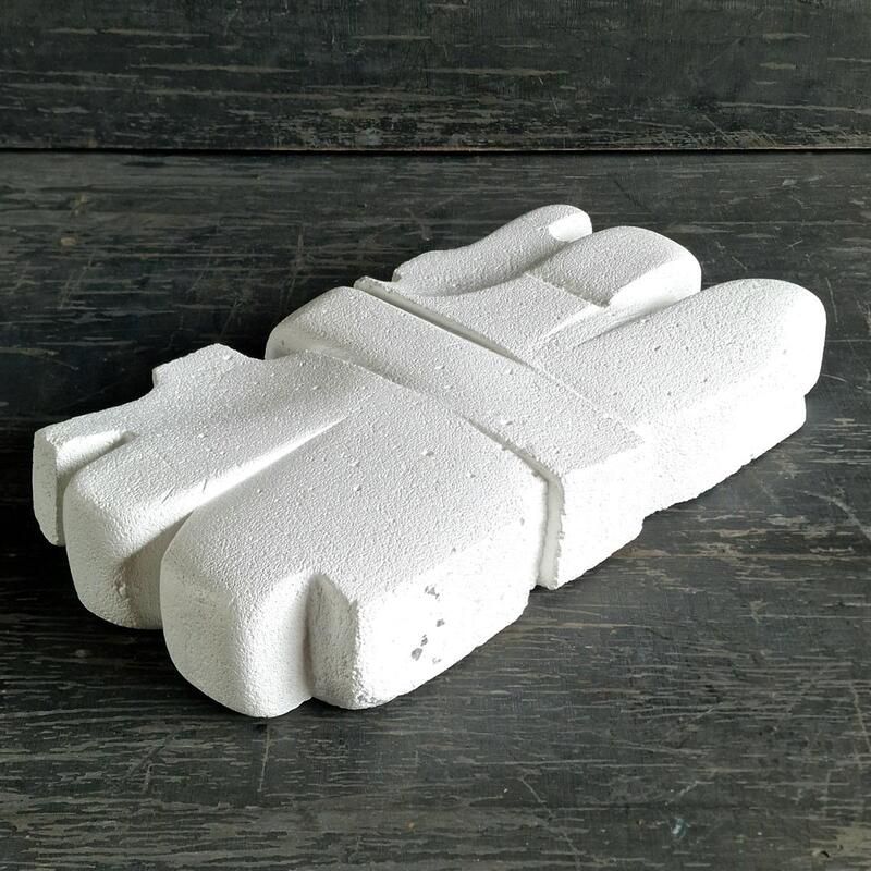 A fascinating abstract sculpture carved out of Ytong with a white painted surface, an intriguing piece of art, artist unknown, very good condition, Belgium 1970
