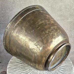 A rather large and exclusive brass sugar pot planter formerly used in an old sugar factory, 2 sections have original tiny perforations, lovely used patina, very good condition, France 1920