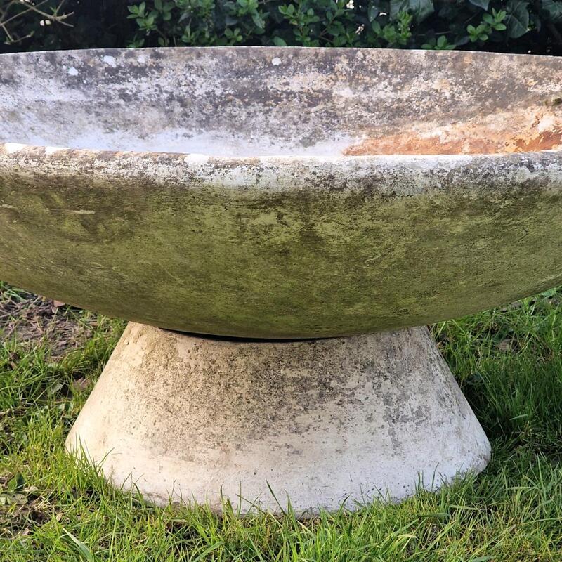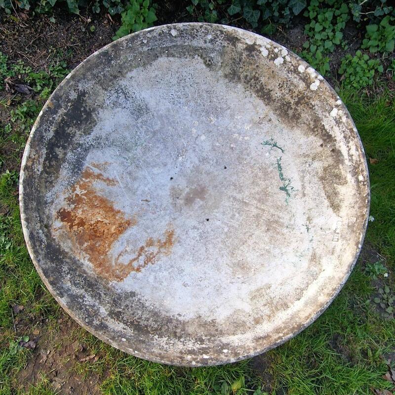 A modern-looking large W.Guhl disk on conical base made of fiber cement with a well-weathered patina, also nice when tilted, very good condition, stamped, Switzerland 1960