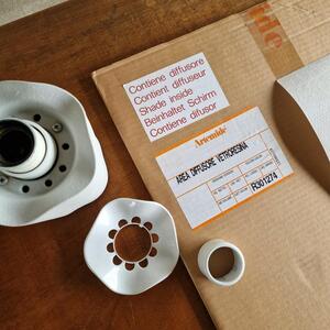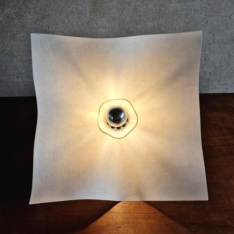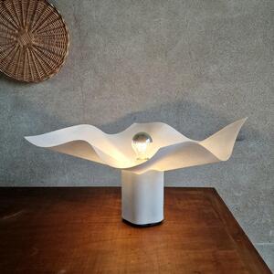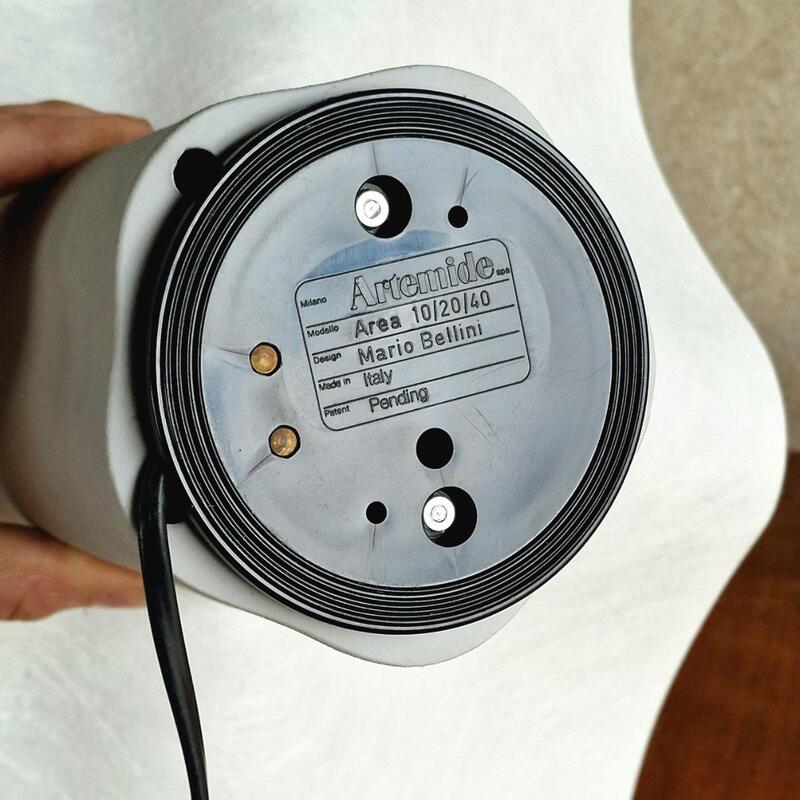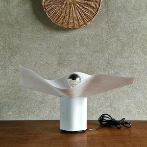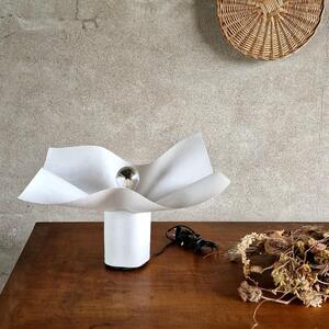 A sublimely beautiful Area table lamp by Mario Bellini for Artemide in the form of a flower in bloom, lampshade made of parchment fabric with original hardboard cover for transport, base in porcelaine, as good as new condition, Italy 1974