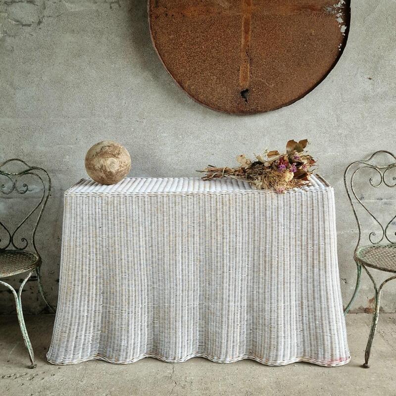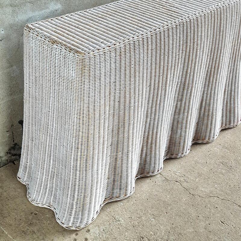 A stunning trompe l'oeil console table made of white painted wicker in a lovely waved shape imitating a tablecloth, good solid condition with some minor wear, The Nederlands 1980