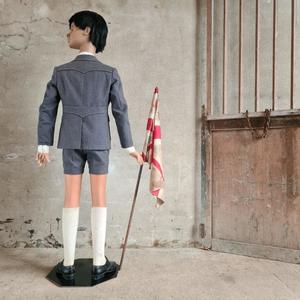 Watch out for this handsome boy, dressed up and ready to show the latest Seventies fashion in the shop window, wooden arms can move, mounted on a flat iron plate, very good and sturdy condition, Belgium 1970