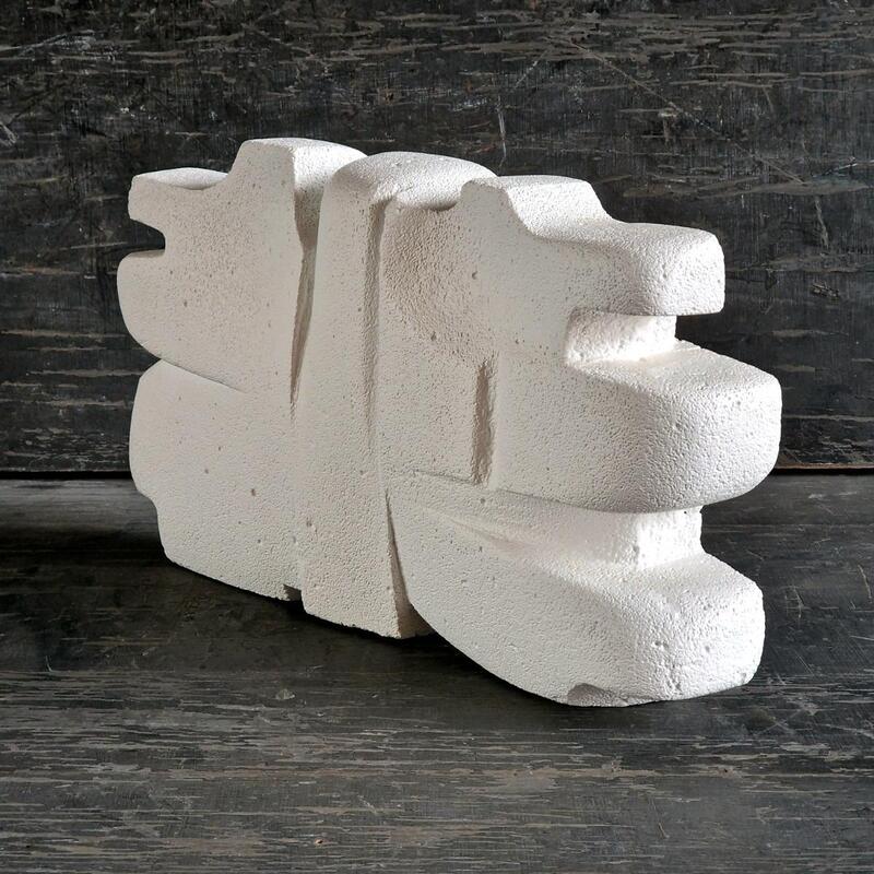 A fascinating abstract sculpture carved out of Ytong with a white painted surface, an intriguing piece of art, artist unknown, very good condition, Belgium 1970
