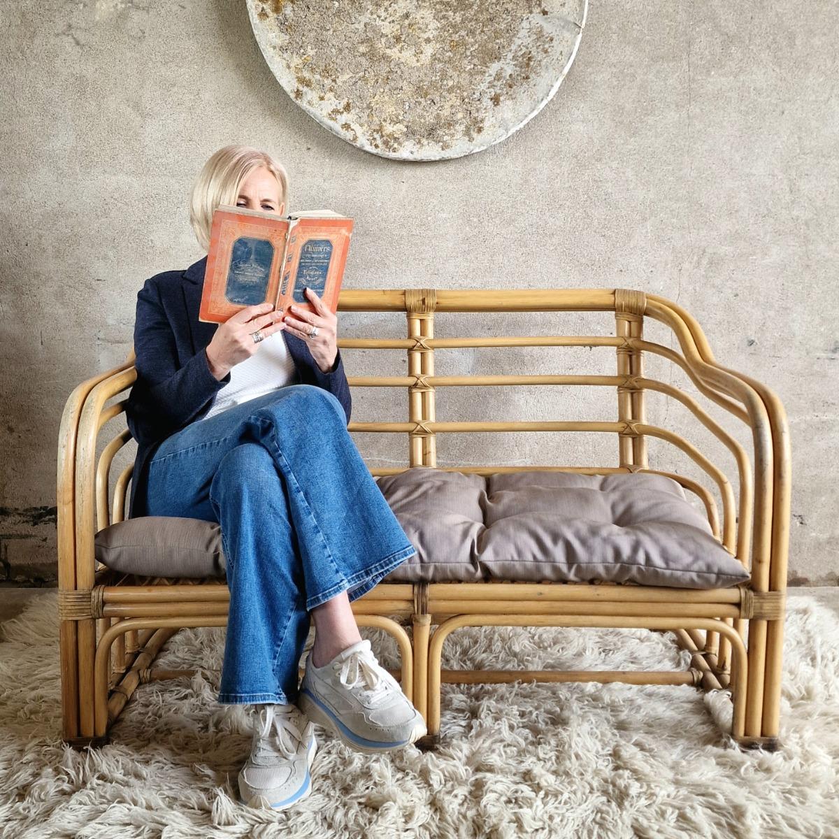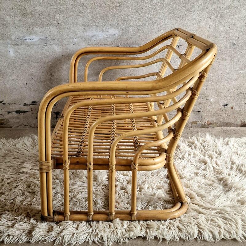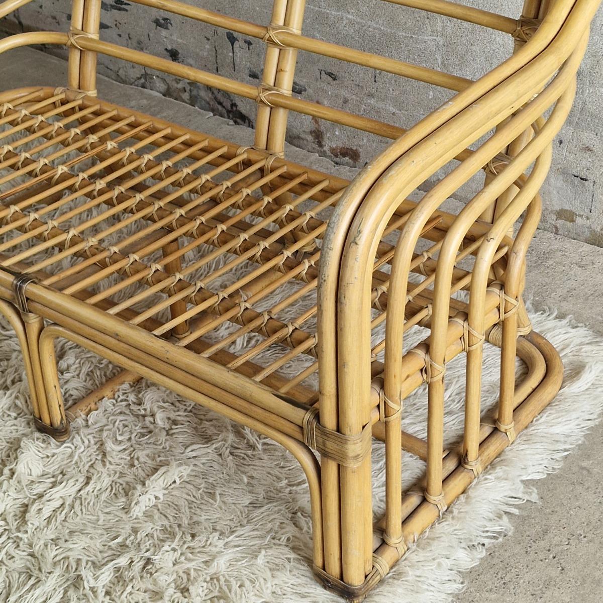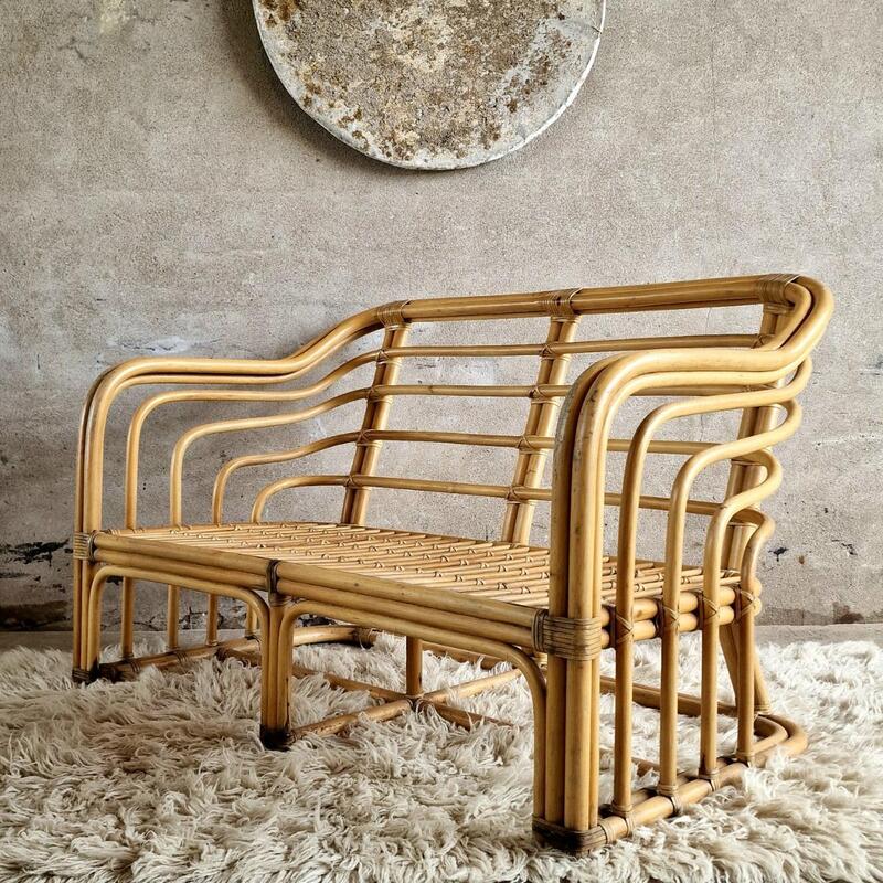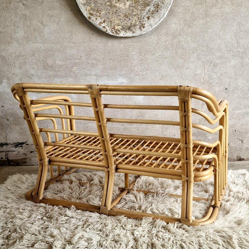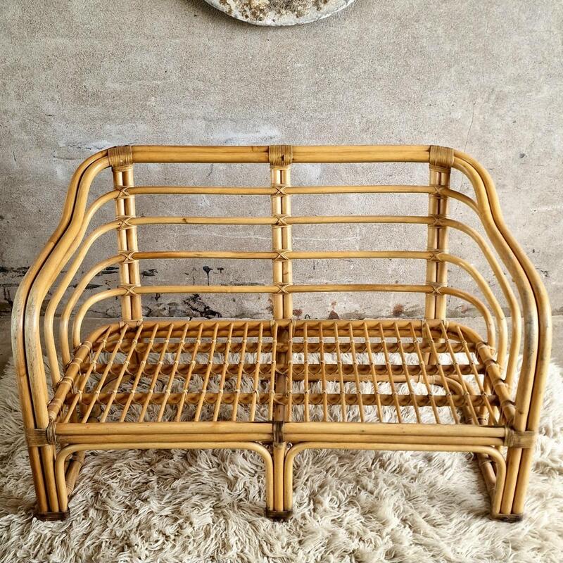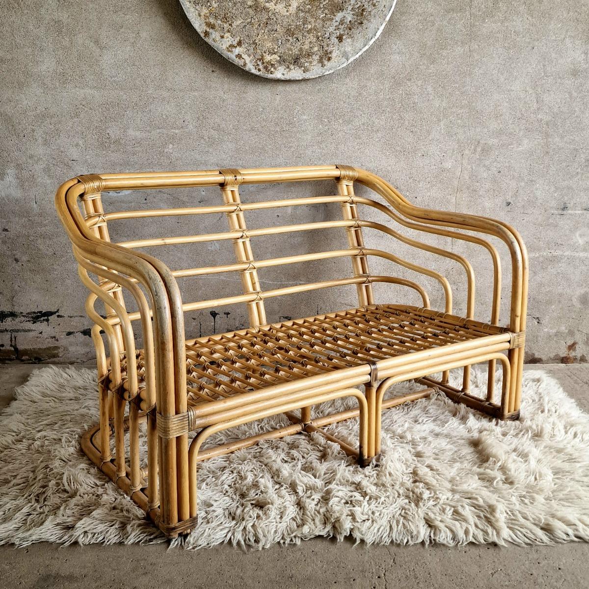 A classy and comfortable bamboo 2 seater sofa designed in an elegant look, very good and sturdy condition, unoriginal cushions included, France 1960