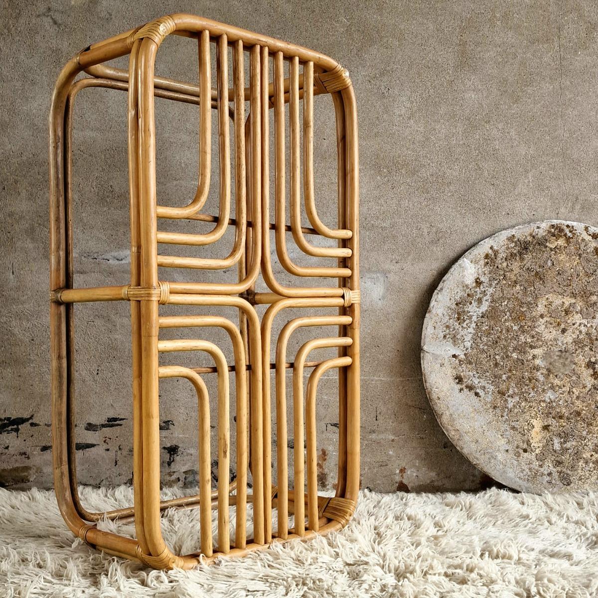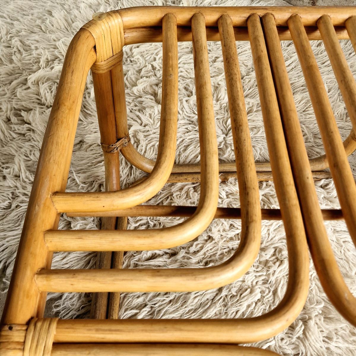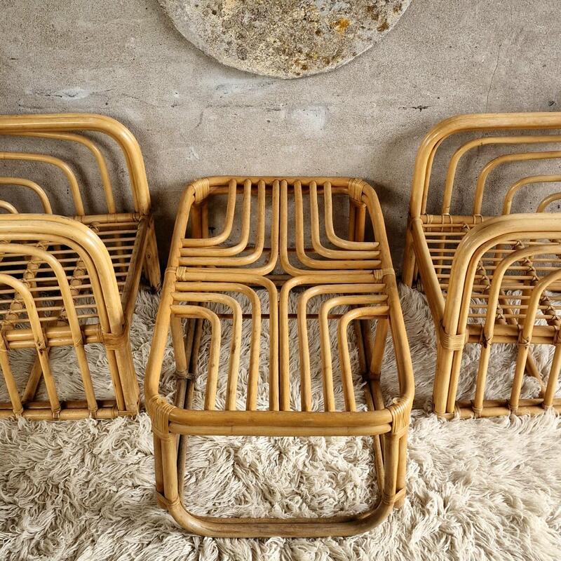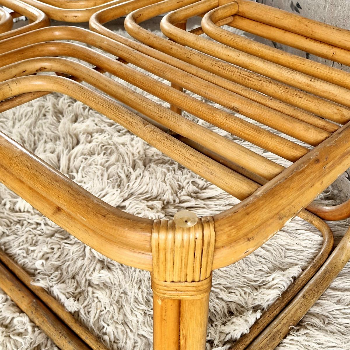 A trendy bamboo coffee table in a rectangular shape with rounded corners designed in a liniar look, you could add a glass top as supports are there (easy to remove), very good stable condition, France 1960