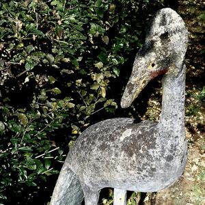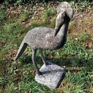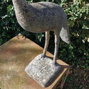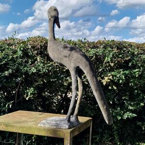 An impressive and genuine Emile Taugourdeau crowned crane bird made of cast stone, large elegant model with very weathered white/grey paint, very good condition, France 1970