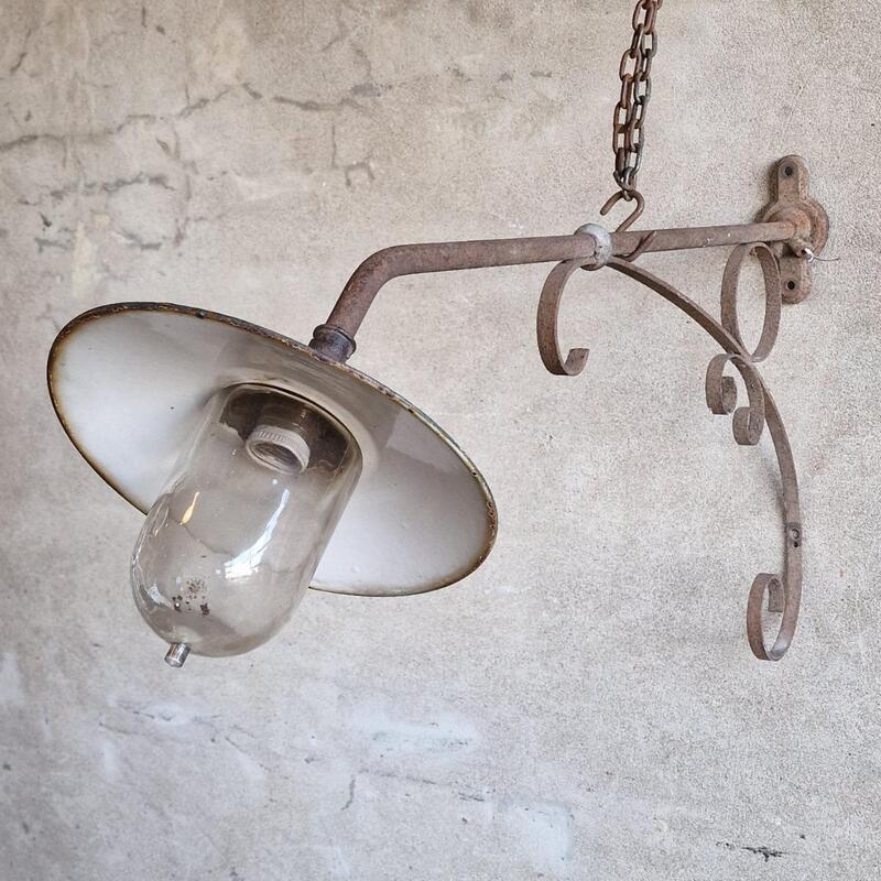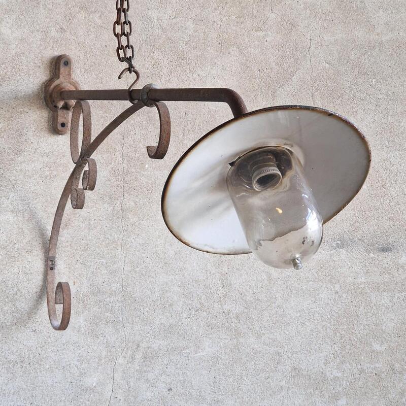 Large French enamelled wall lamp