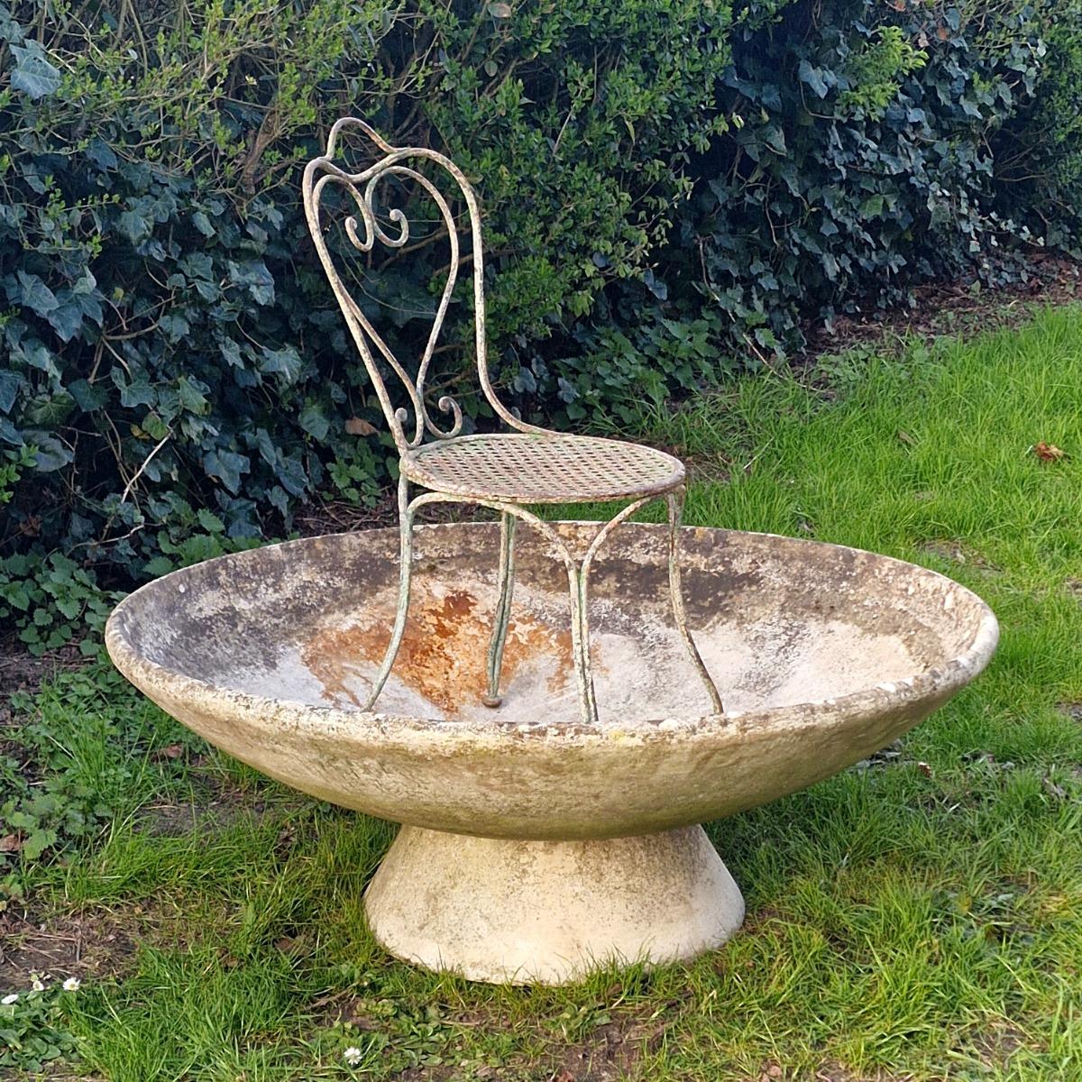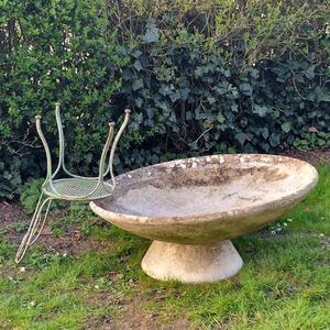 A modern-looking large W.Guhl disk on conical base made of fiber cement with a well-weathered patina, also nice when tilted, very good condition, stamped, Switzerland 1960