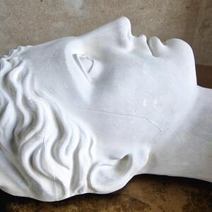A beautiful plaster head in a classical style, head of Artemis the goddess of the hunt, with a tiara in her curly hair, nice patina, hook to hang, very good condition, France 1940
