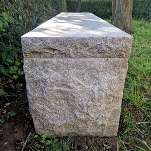 A fantastic primitive stone bench consisting of 3 thick light grey hand-carved granite parts, the feet can be put differently as they are not attached, slightly weathered patina, very good condition, Belgum 1 million years old but made in the 70ties