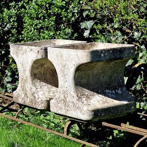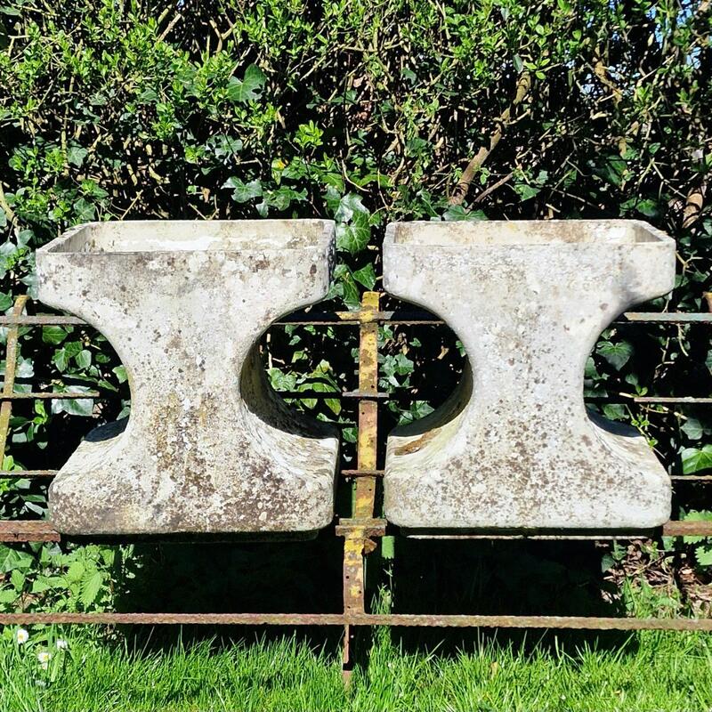 A fantastic and rare pair of Willy Guhl planters in an X-shape with a nice weathered surface, stamped, stackable, very good condition, Switzerland 1970