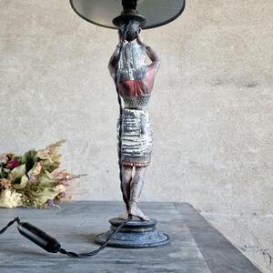 A delightful spelter Pharaoh lamp made of a candle stick, painted in lovely origiinal colours, used patina, very good condition, lamp shade included, France 1890