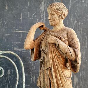 A beautiful wooden Diana de Gabis with fantastic carving showing the elegance of her robe, slightly bent, very good condition, France 1920